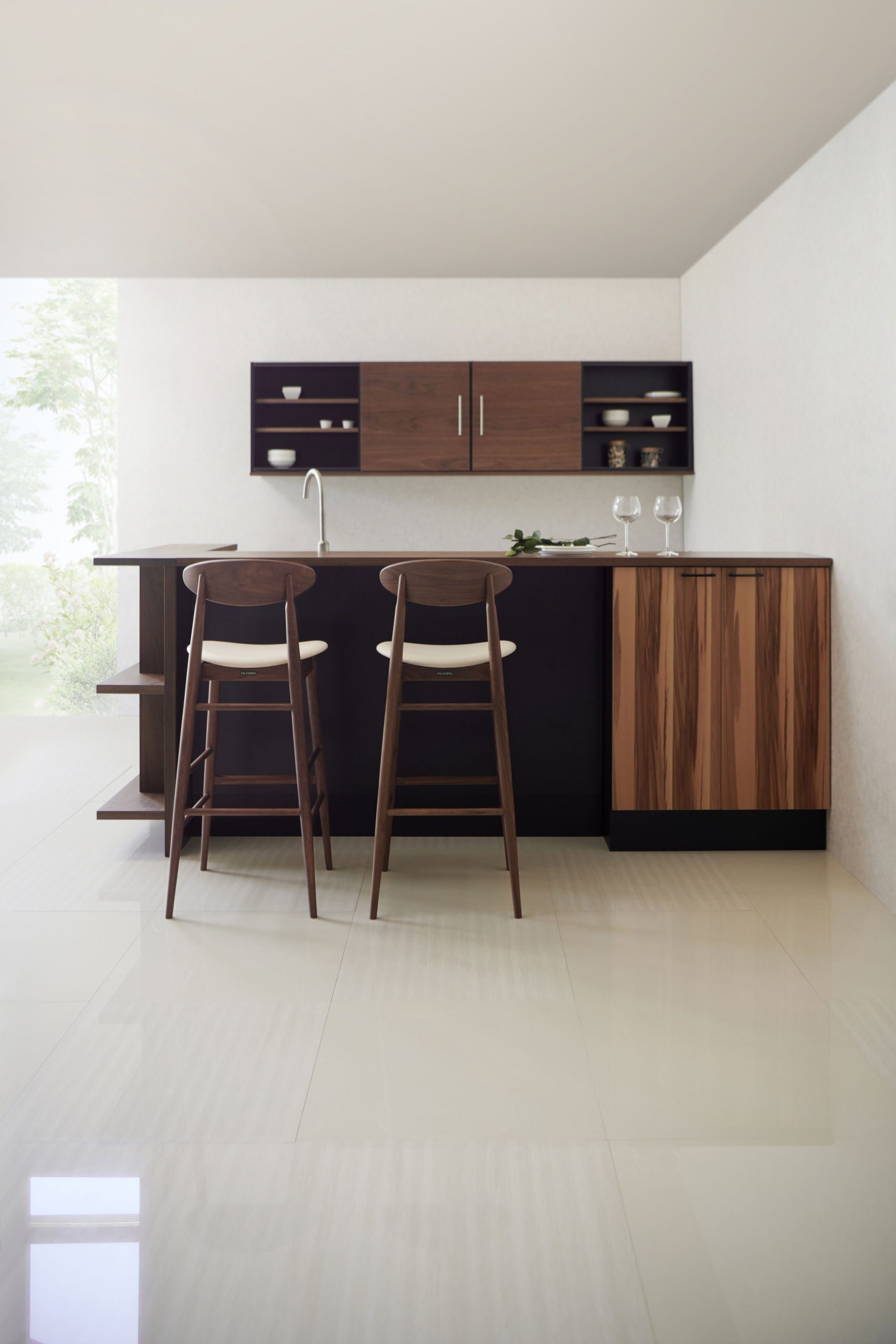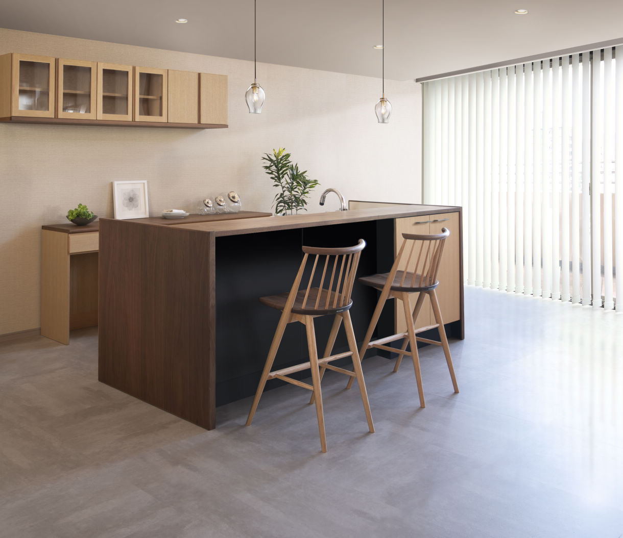 生活スタイルや家族の状況に合わせてフレキシブルに対応ができるのがKITCHEN FACE(キッチンフェイス)。家族が増えれば、椅子の数も増えていく...。そんな場合にも、カウンター、扉、サイドパネルなどの多彩な「パーツ」をニーズに合わせて組み合わせることで、お気に入りのデザインテイストを損なうことなく、カタチを変化させられます。生活の変化と歩調を合わせて変えられるシステムの柔軟性がキッチンフェイスのポイントです。