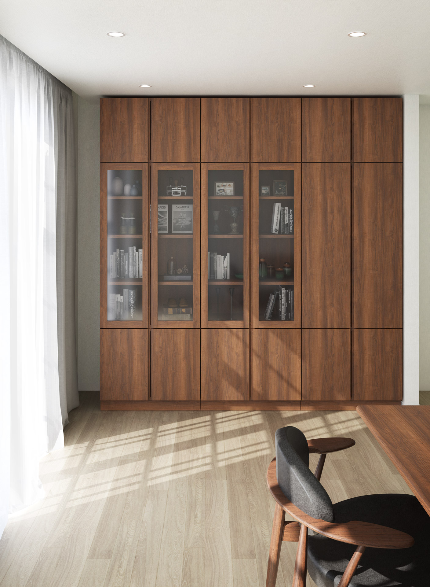 L.Form(エル・フォーム)は、様々な形のBOX を自分仕様に組み合わせるシステム家具です。豊富なBOX サイズでどのような空間にもピッタリと設計できます。素材や塗装色で天板や扉の色を変えて新鮮な空間演出をすることも可能です。TV ボードやホームシアター用の収納、デスクやドレッサーなど、あなただけの設計をご相談ください。