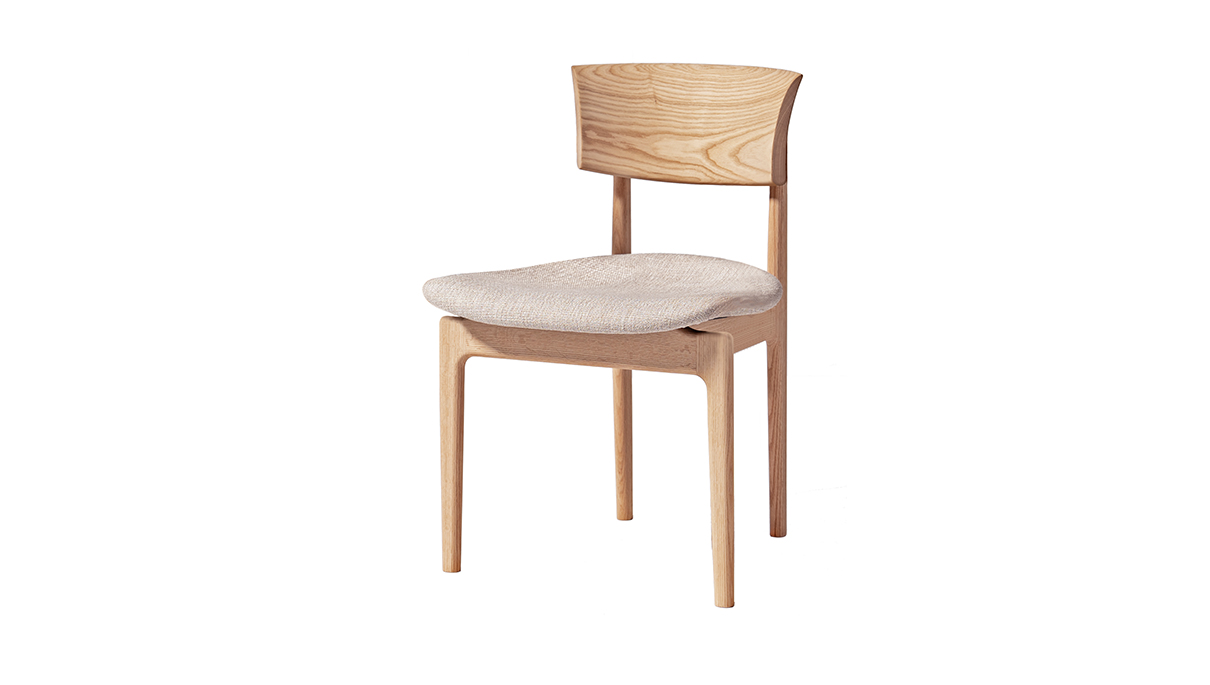 『座り心地が抜群に良いダイニングチェア』という課題に真正面から向き合い、三次元曲線の背板と座面の組み合わせからなる独特の表情や快適な座り心地を実現しました。からだにストレスを感じさせない心地良さ・上品な一枚板の背が美しいプレミアムな椅子です。 背板は既存のウォ-ルナットに、明るい木肌のタモを新しく追加。インテリア表現の幅を広げたCHICの世界をお楽しみください。