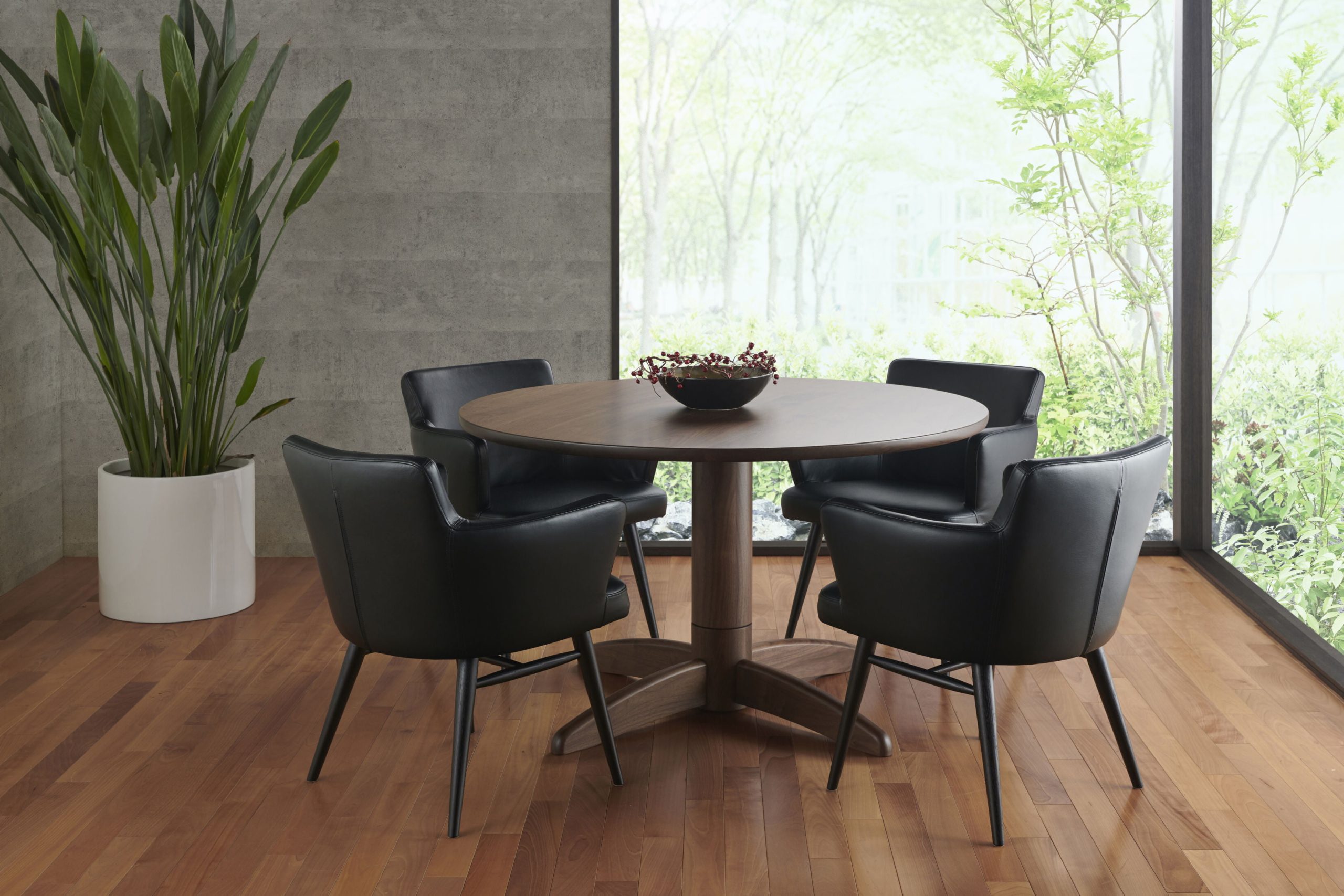 エレガントな雰囲気でいて、ナチュラルな木の質感とファブリックの組み合わせが心地よいくつろぎの空間を演出します。