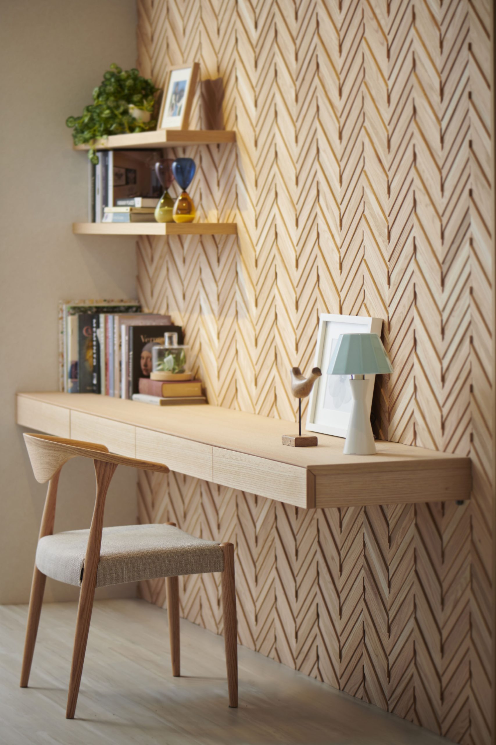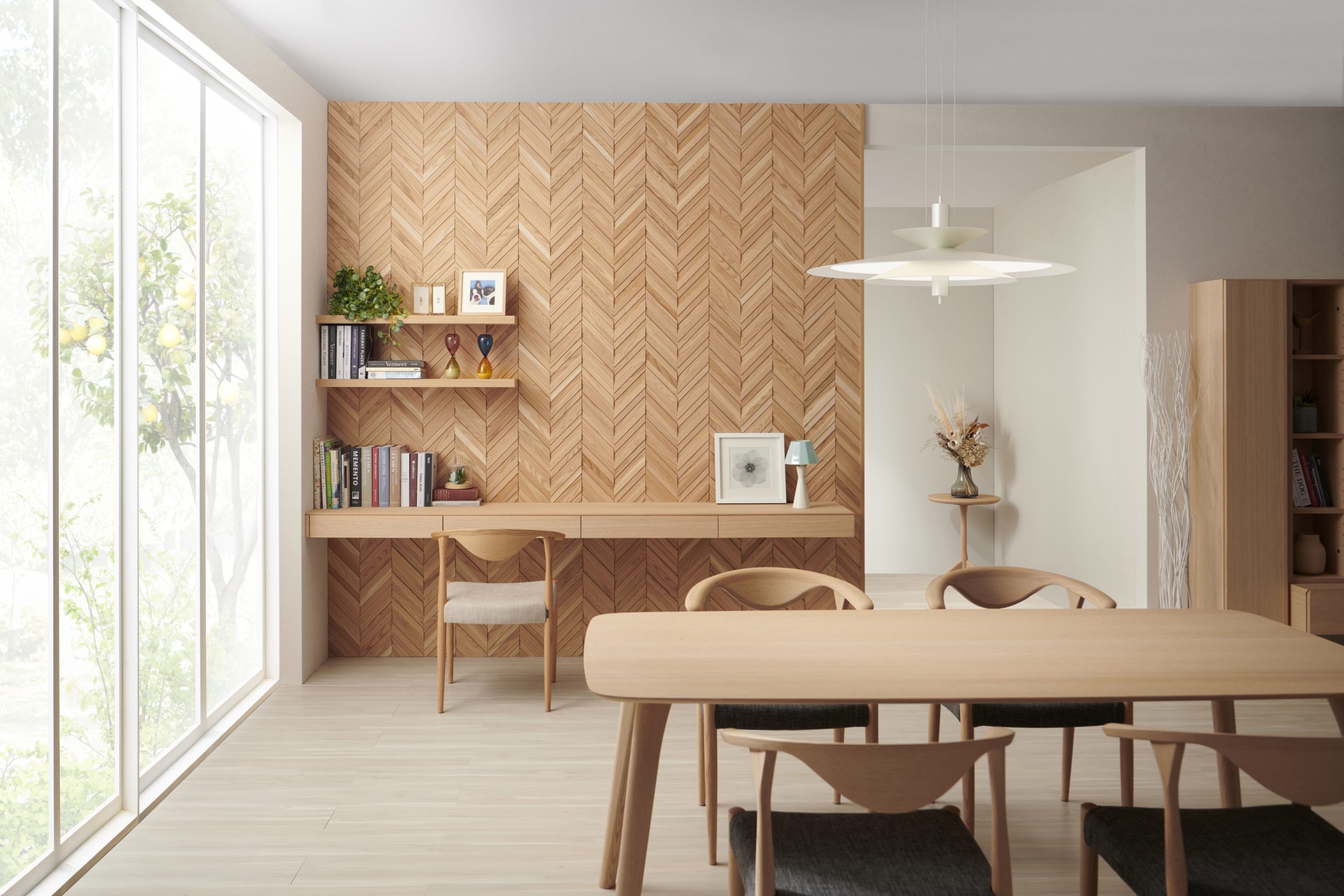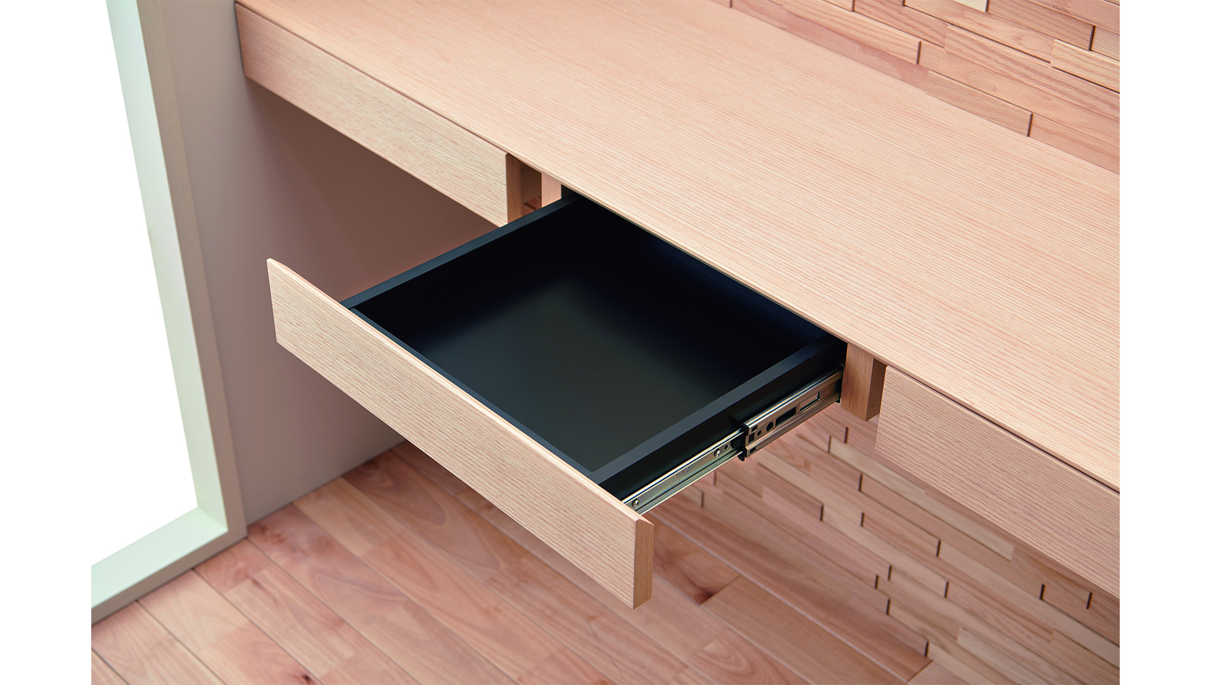 KASHIWA が提案するホームオフィスはインテリアとして美しく調和します。SLIMデスク(フロートタイプ)は、一枚の板が浮遊するシンプルな外観で洗練されたデスク環境を実現します。イメージに合わせて L.Form などの他 BOX と組み合わせ、収納量や機能を拡張することが可能です。