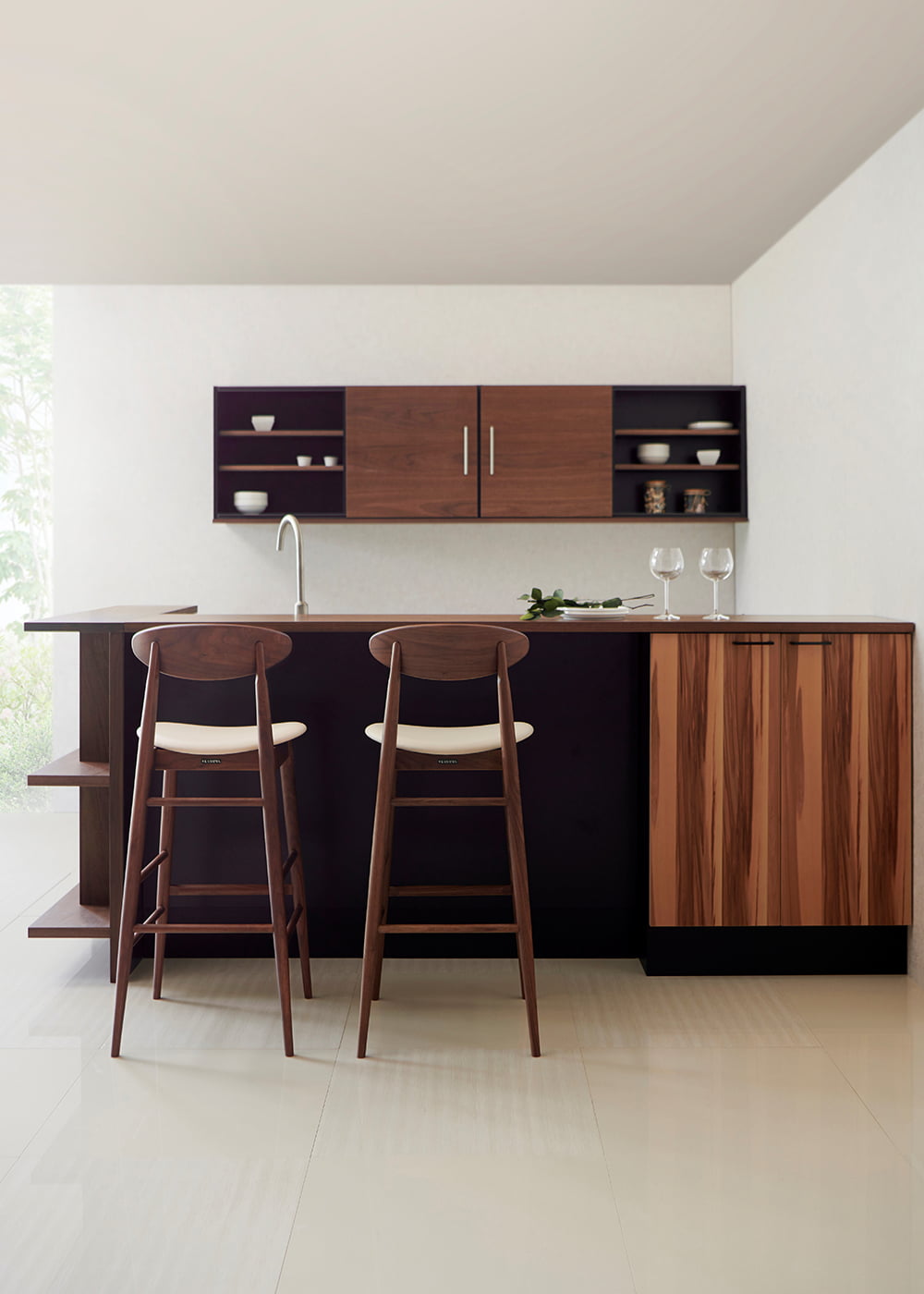 美しく優しいスタイルで座る人の心を和ましてくれるカウンターチェア。ご自宅のキッチンカウンターだけでなく、ラウンジやバーなど、数多くあるカウンターコーナーに対応できます。